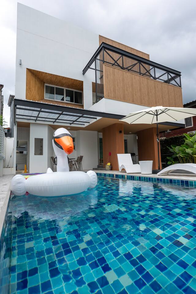MODERN LUXURY POOL VILLA -BEST LOCATION -PRIVATE HOUSE- BIG SWIMMING POOL- CAN WALK TO MAYA AND NIMMAN ROAD -OPTIONAL BREAKFAST - 4 BEDROOMS - 5 BATHROOMS IN SUITE- ONE GROUND FLOOR BEDROOM -FULLY EQUIPPED KITCHEN- BBQ GRILL- TV WITH NETFLIX IN EACH ROOM - FAST INTERNET - PRIVATE PARKING - OUTDOOR FURNITURE - MAYA SHOPPING MALL 5 mins walk - Nimmanheim Road 5 mins walk - Old city 5 mins car - Airport 12 mins car