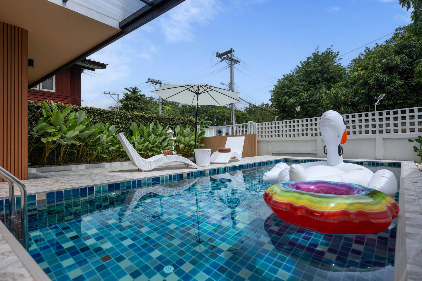 Welcome to your perfect Chiang Mai getaway! This modern luxury villa offers the ultimate combination of comfort, style, and unbeatable location. Just a short walk to Maya Shopping Mall ποΈ and the vibrant Nimman Road βπ, you're steps away from the cityβs best cafes, boutiques, and nightlife. π‘ Property Highlights: ποΈ 4 spacious bedrooms (all with en-suite bathrooms πΏ) ποΈ One ground floor bedroom β perfect for easy access π½ 5 stylish bathrooms for added comfort and privacy πββοΈ Large private swimming pool with outdoor seating πͺ and BBQ grill π π©βπ³ Fully equipped modern kitchen β ideal for cooking or a private chef π³ Optional breakfast service available πΊ Smart TV with Netflix in every room β perfect for movie nights β‘ High-speed Wi-Fi throughout the villa β work or stream with ease π Private parking on-site π³ Located in a safe and quiet neighborhood β ideal for families or groups Whether you're here to relax or explore, this villa is your private sanctuary in the heart of Chiang Mai. Enjoy lazy poolside afternoons, cozy movie nights, or a BBQ evening under the stars π. π Book now and make your stay unforgettable!